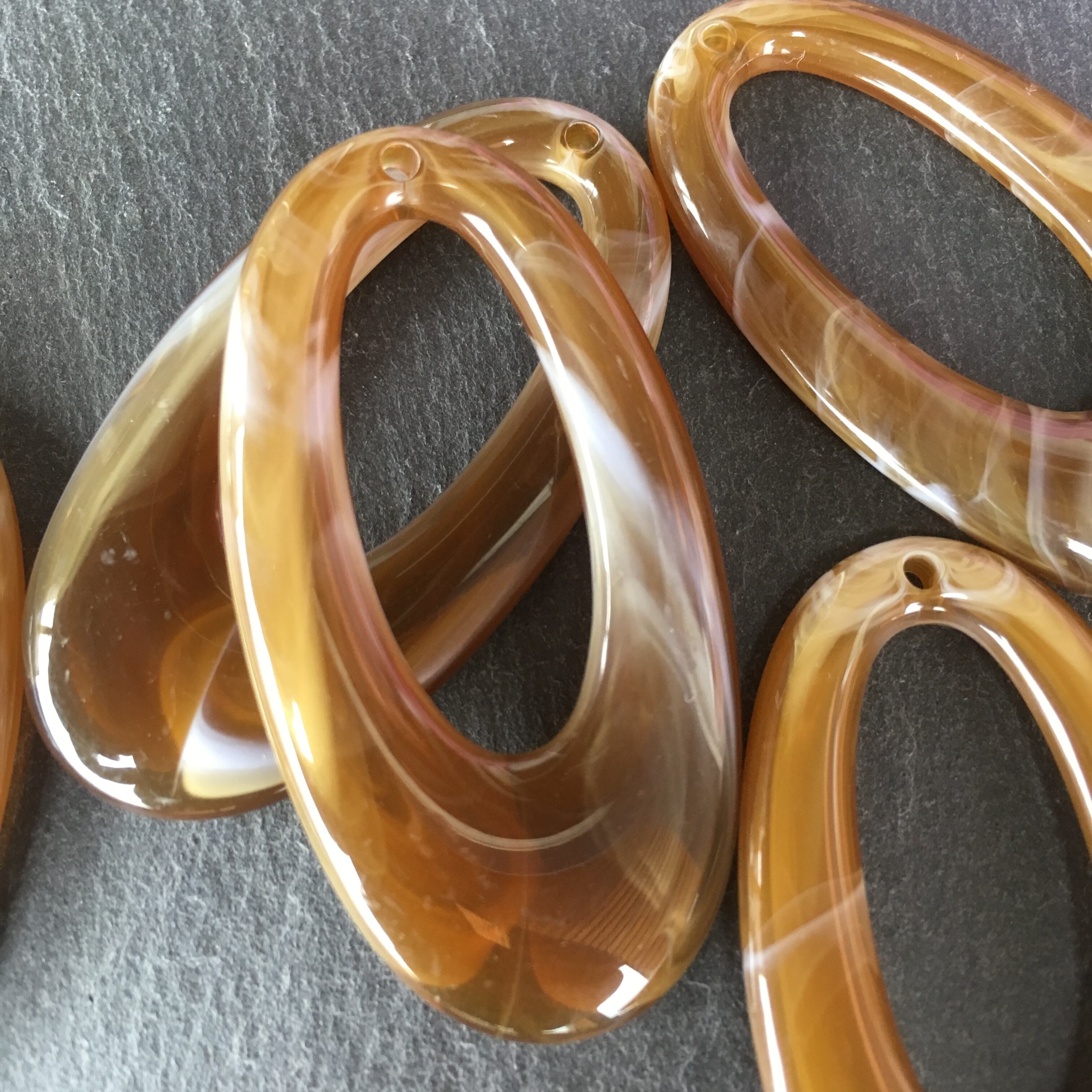 マーブルデザインのオーバルビーズ